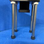 今回の測定器はあまりにも小さかったのでワークを手で持ってうまく測定することが可能なのかの検証をするために、当社にある3Dプリンターを使って樹脂で測定器を製作することにしました。上の画像に写っているオレンジ色の高さ測定器がそれです(左側の振れ測定器についても、四本の長い脚以外を3Dプリンターで製作、下の白い画像)。事前検証で振れや高さを測定できることを確認しました。そして、TSS社 担当者様にもそのモデルを実際に見ていただいて、それを元に実際の測定器の製作を行いました。