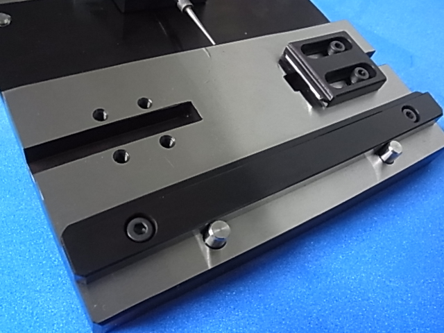 固定側+スライド方向の横側の合計2点で保持してダイヤル端子で測定する仕様。
